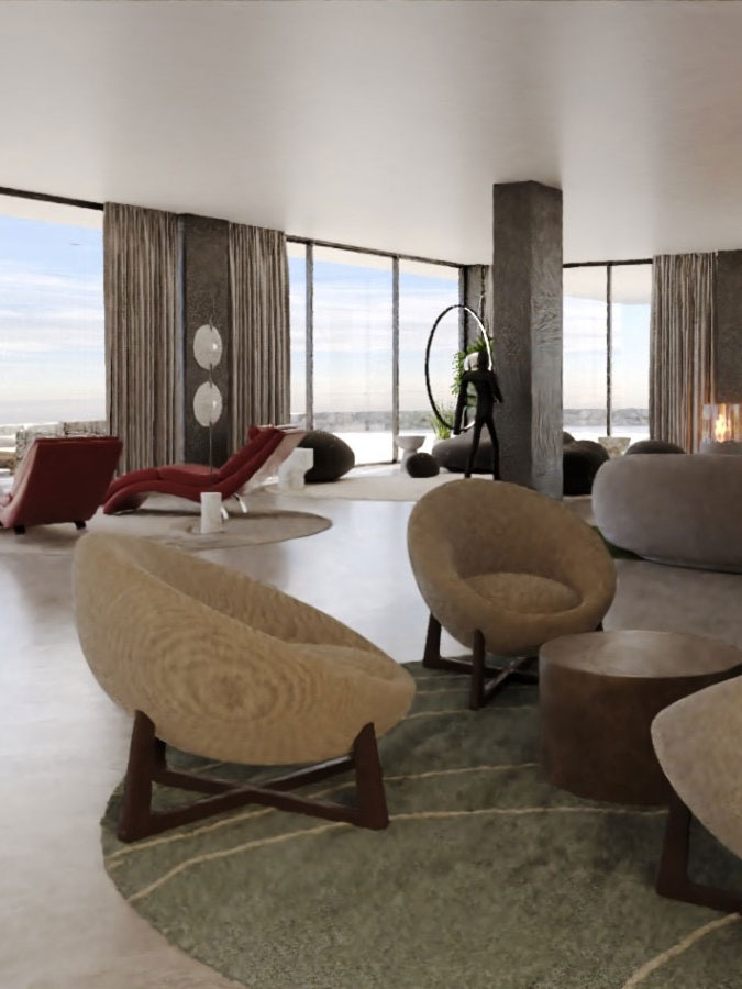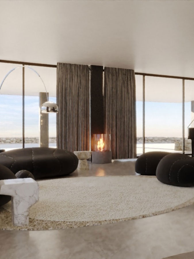Η προσέγγισή μου βασίστηκε στην ανάδειξη της αυθεντικής αρχιτεκτονικής, ενσωματώνοντας στοιχεία διαφάνειας, καθαρών γραμμών και φυσικής αρμονίας. Στόχος μου ήταν να δημιουργήσω έναν χώρο που συνδυάζει την αισθητική του παρελθόντος με την άνεση και την εμπειρία του σήμερα — ένα καταφύγιο για τον επισκέπτη που αναζητά κάτι μοναδικό, αυθεντικό και εμπνευσμένο.